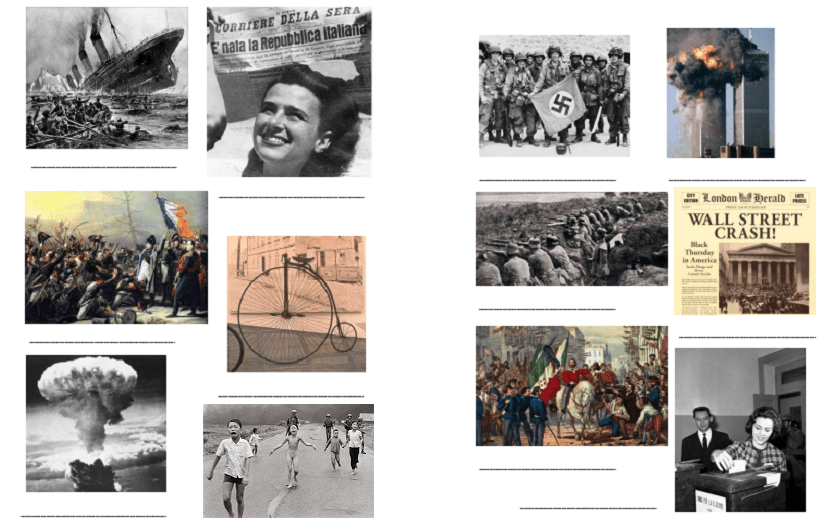 Prima di mostrare gli eventi proposti, si ragiona insieme a loro sul sottotitolo “Mettiamo a confronto la storia con la Storia”: sono certa che anche i vostri alunni insieme riusciranno a ipotizzare la giusta differenza tra “storia” e “Storia”.