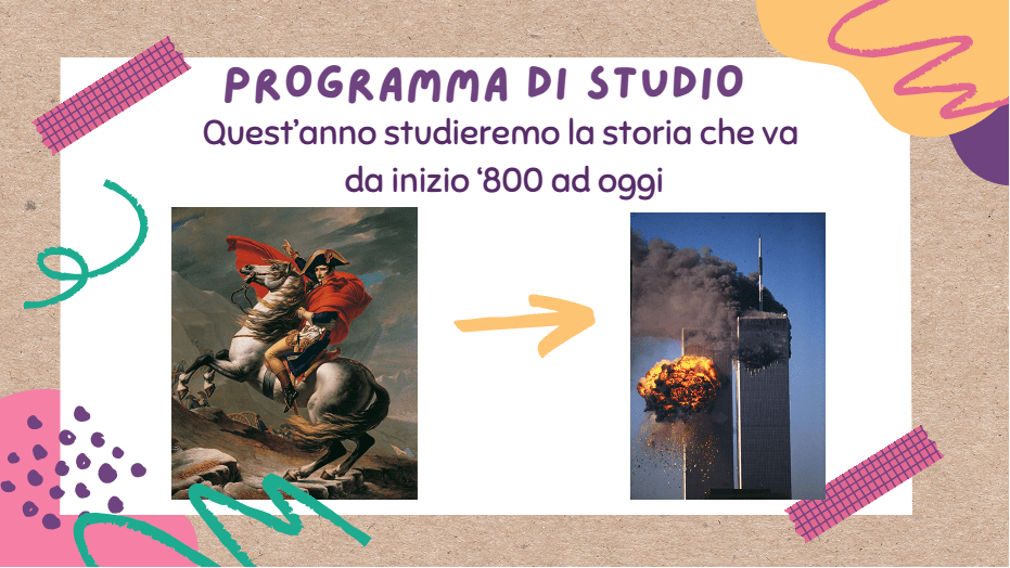 2. Presentazione del “programma” di storia che si andrà ad affrontare durante l’anno, mostrando il punto d’inizio e di fine e specificando da subito che all’interno di quel lungo periodo si farà una selezione degli eventi e delle tappe fondamentali.