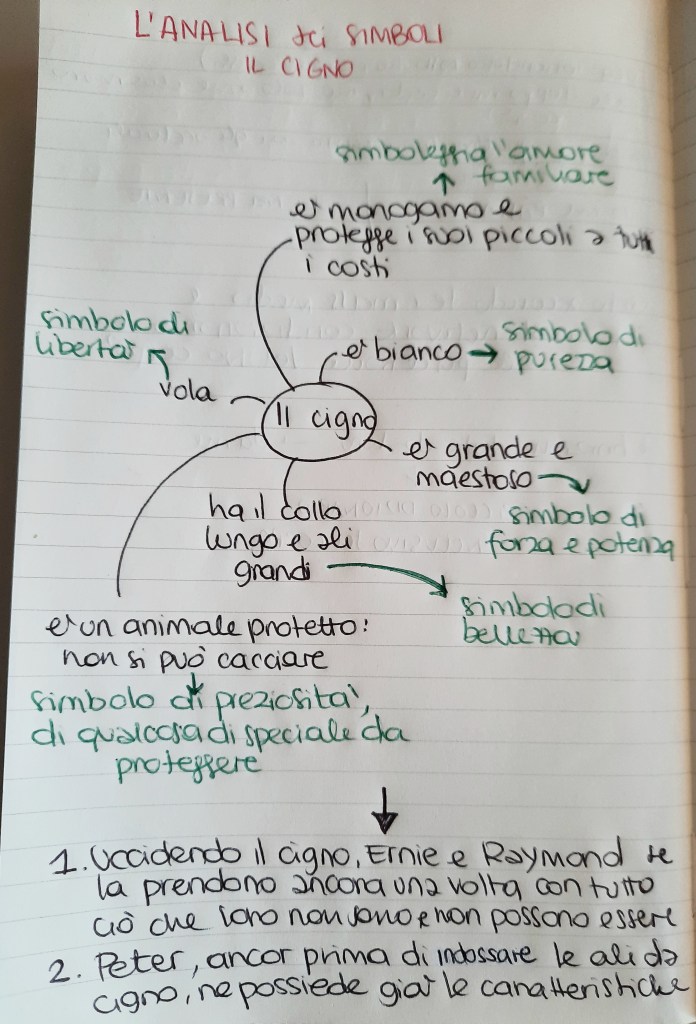 Ho quindi spiegato loro che talvolta nei testi ci sono elementi che racchiudono in sé significati più profondi di quelli che si possono scorgere ad una prima lettura e che in questo testo il simbolo più forte era proprio il cigno che dà il titolo al racconto.