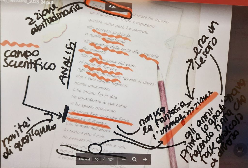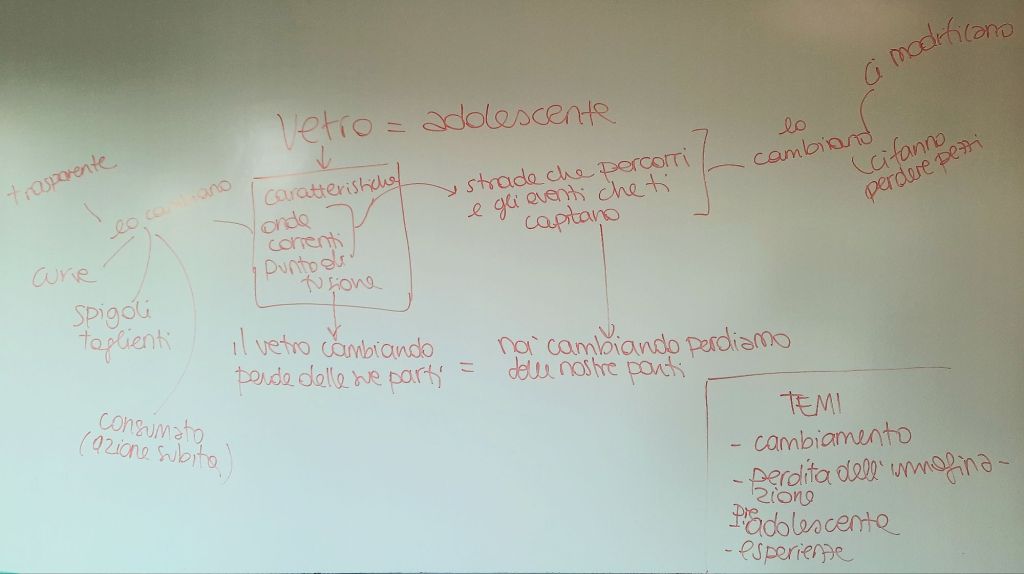 Finché M. ha un’intuizione che condivide incerta ad alta voce e che sblocca tutto e tutti: “Secondo me la poetessa vuole paragonare il vetro a noi adolescenti, perché anche noi come il vetro viviamo degli eventi che ci cambiano, ci fanno perdere dei pezzi e a volte diventiamo taglienti”. Bum, il gioco è fatto!