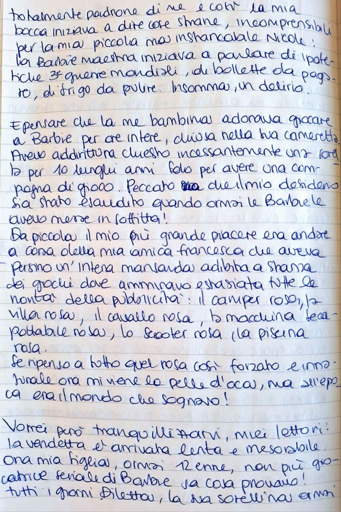 Al termine dell’attività che ha richiesto circa 30 minuti (più che lampi di scrittura ci siamo trovati di fronte a una tempesta di fulmini: non smettevano di scrivere!), ho proposto loro di condividere non come al solito (in modo facoltativo ad alta voce alcuni aspetti emersi), ma di scambiarsi i taccuini con persone con cui non hanno ancora stabilito forti rapporti, nonostante i 3 anni insieme: l’ho fatto perché in questa classe c’è un grande bisogno di rafforzare le relazioni e di farle uscire dai soliti gruppetti.