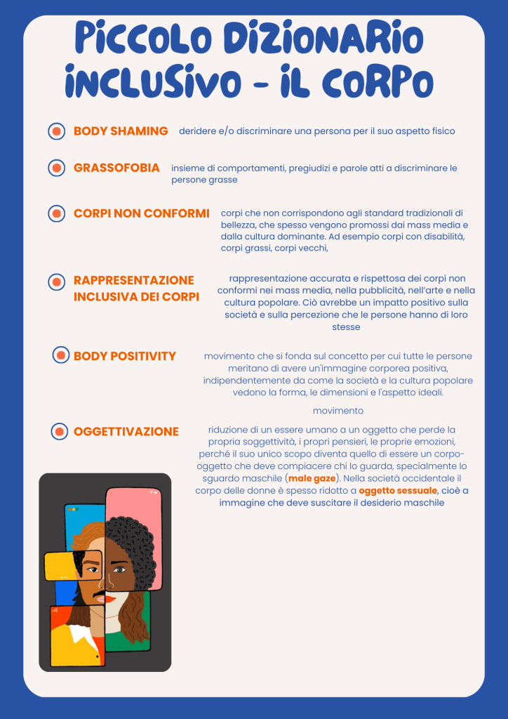 Per tirare le fila del discorso ho proposto loro un breve dizionario inclusivo su cui abbiamo ragionato insieme, provando ad applicare le definizioni a situazioni a noi vicine o note.