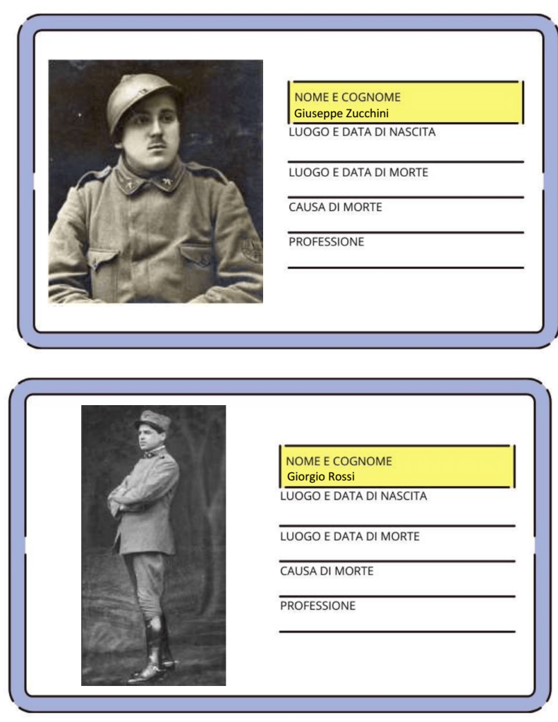 Per i soldati, abbiamo proposto loro la consultazione della Banca Dati dei Caduti e Dispersi 1ª Guerra Mondiale del Ministero della Difesa.