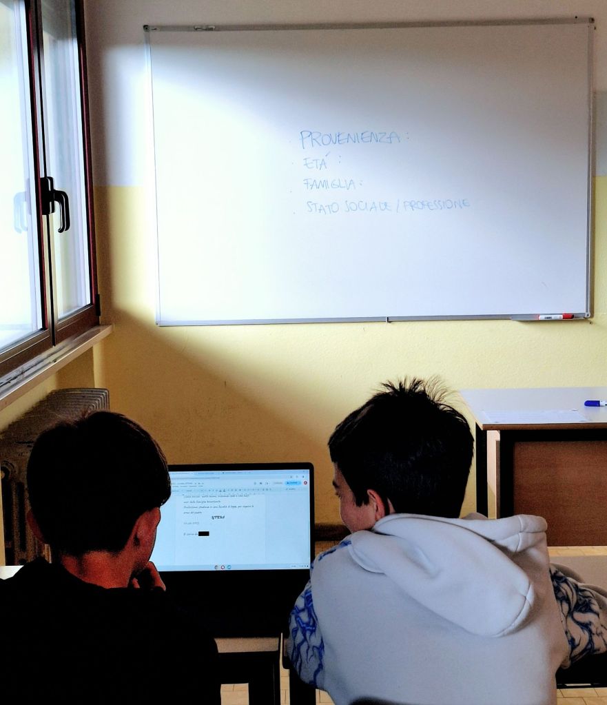 In questa fase, cuore dell’esperienza, abbiamo diviso la classe in due gruppi, collocati in due aule differenti, ciascuna con uno di noi. La consegna è stata la medesima per entrambi i gruppi, ma ciò che li ha contraddistinti è stata la modalità di lavoro: un gruppo ha scritto attraverso l’Intelligenza artificiale, mentre l’altro ha utilizzato il supporto del PC solo per la digitalizzazione del testo.