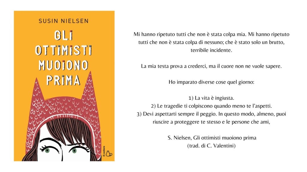 S. Nielsen, Gli ottimisti muoiono prima, trad. di C. Valentini, Milano, Editrice Il Castoro, 2017.