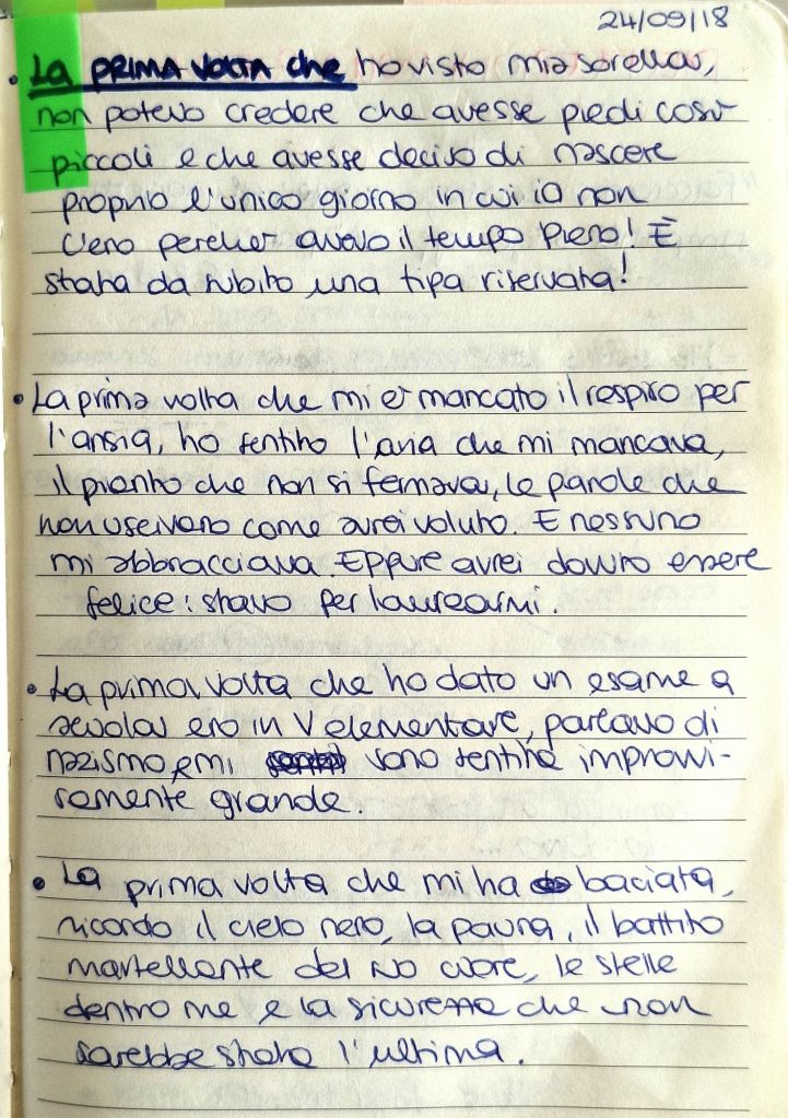 Eppure scrivere mi piaceva e mi riusciva anche abbastanza bene. Ricordavo la piacevole sensazione provata quando, in occasione dei temi in classe, entravo nella mia writing zone: la concentrazione e l’immersione erano tali da dimenticare tutto ciò che mi circondava, ma ciò non era bastato a rendermi una scrittrice autonoma.