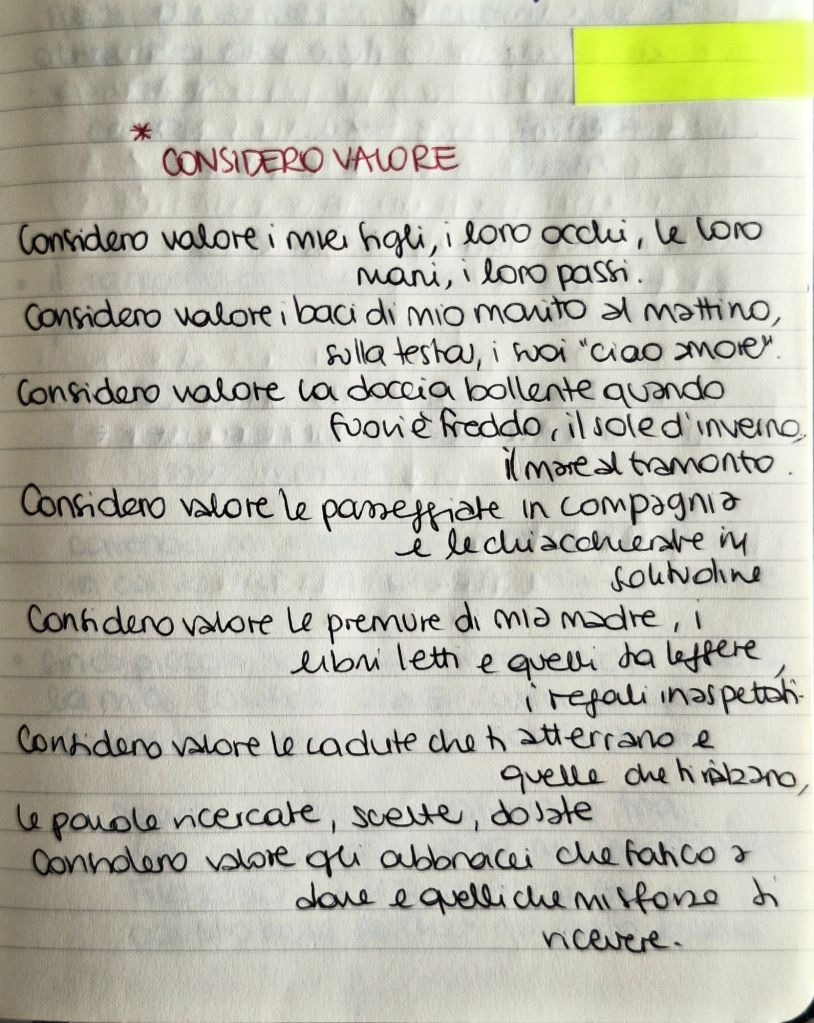 In preparazione all’attivatore del Cuore, si fa un lungo elenco di argomenti più o meno specifici che hanno a che fare con noi e su cui ci piacerebbe un giorno scrivere. Tra questi si sceglieranno poi quelli più urgenti da inserire nel Cuore. È un elenco sempre aggiornabile; il mio risale al 2017: quante cose sono cambiate da allora! Ma risfogliando i miei taccuini, mi sono resa conto che molti degli argomenti lì solo immaginati, sono diventati poi oggetto di riflessioni più ampie.