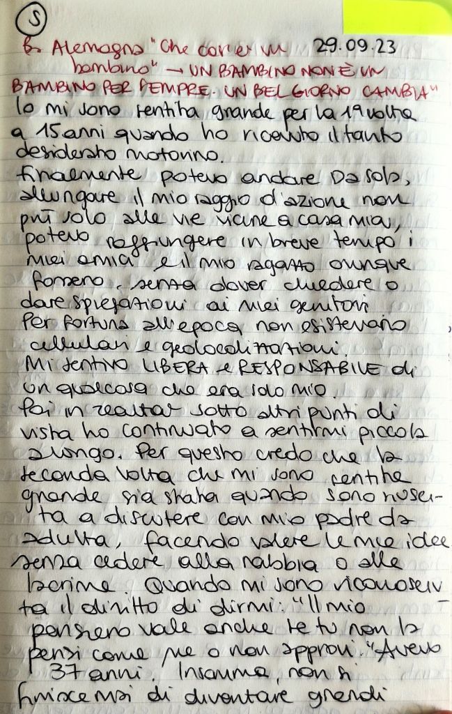 La condivisione delle nostre annotazioni, ci permette pure di creare un rapporto privilegiato coi nostri alunni: inevitabilmente la lettura dei nostri pensieri, delle nostre riflessioni e dei nostri ricordi – sia come scrittori, sia come lettori – riveleranno aspetti di noi, della nostra storia e del nostro modo di vedere il mondo che in una didattica tradizionale difficilmente troverebbero spazio. Questo “svelarsi” diventa davvero una porta privilegiata della relazione: la condivisione del nostro taccuino permette la costruzione di un patto di fiducia che poggia sulla loro capacità di ascolto e di rispetto, elementi imprescindibili all’interno del laboratorio, dove non può esserci spazio per il giudizio superficiale.