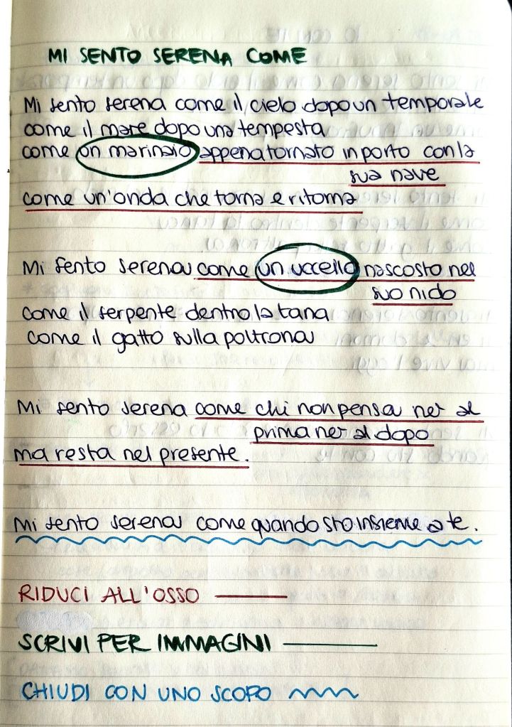 Prima di chiedere ai miei alunni di applicare alcune strategie di revisione ai loro testi poetici, le ho sperimentate sul mio taccuino, così da usare poi il mio componimento come mentor text.