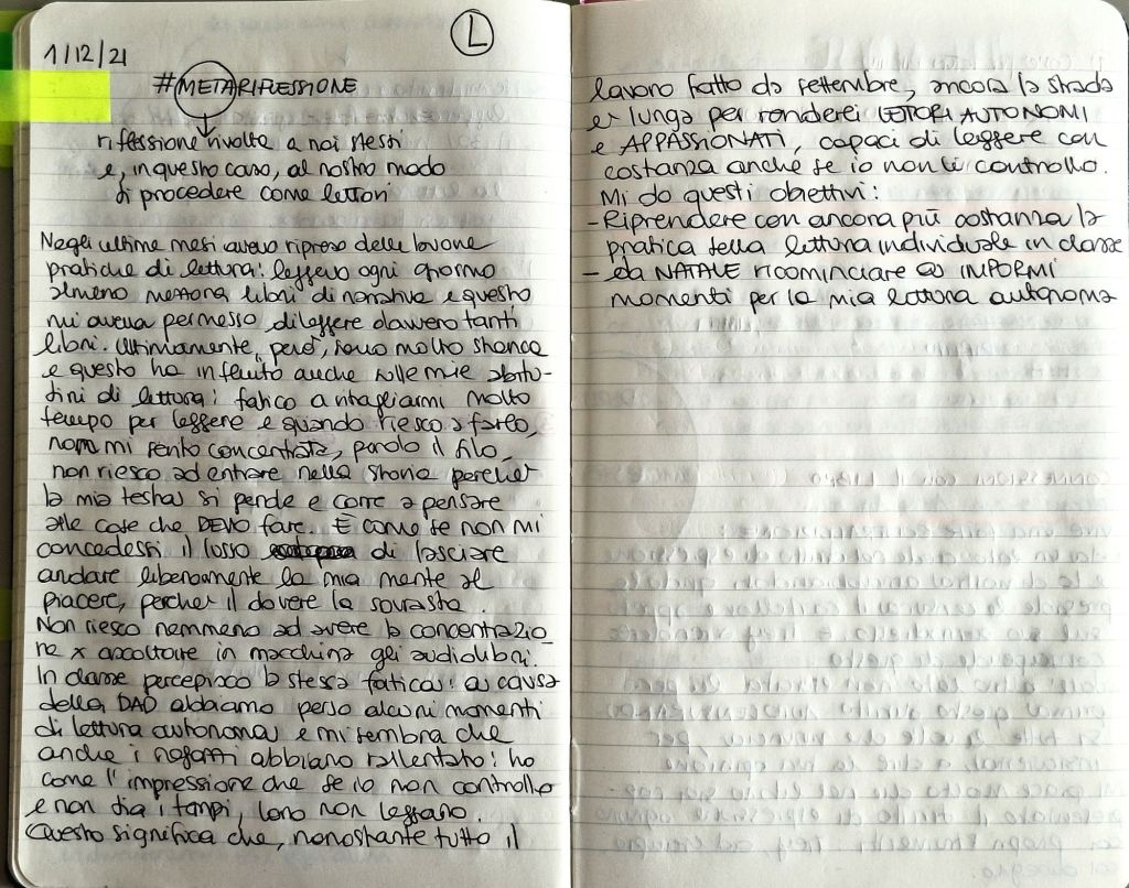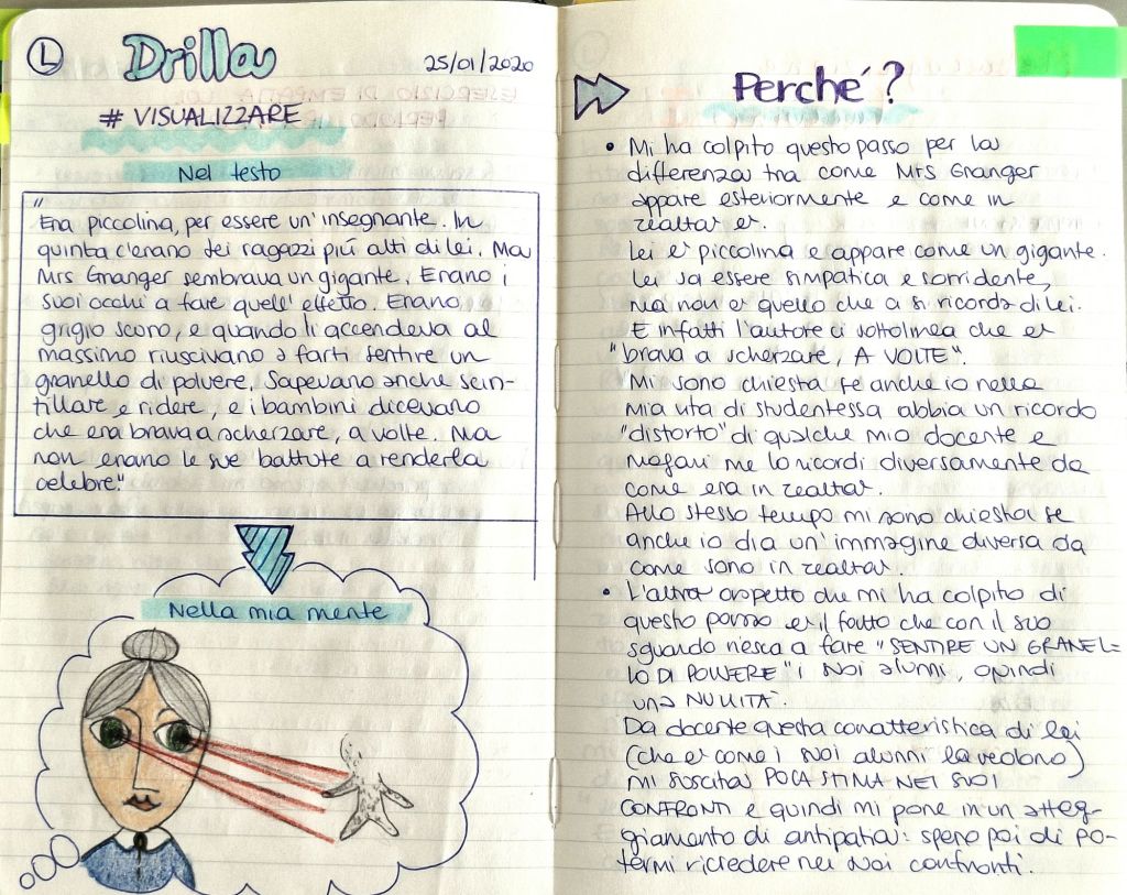 Il taccuino diventa poi anche traccia del percorso fatto, dei libri letti, delle strategie individuate, in un costante cammino insieme di scoperta e metacognizione.