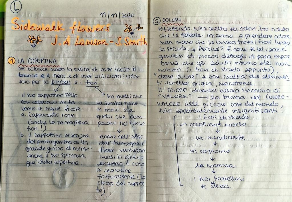 In preparazione alla condivisione in classe del silent book Sidewalk flowers di J. Lawson e S. Smith, ho annotato le mie osservazioni.